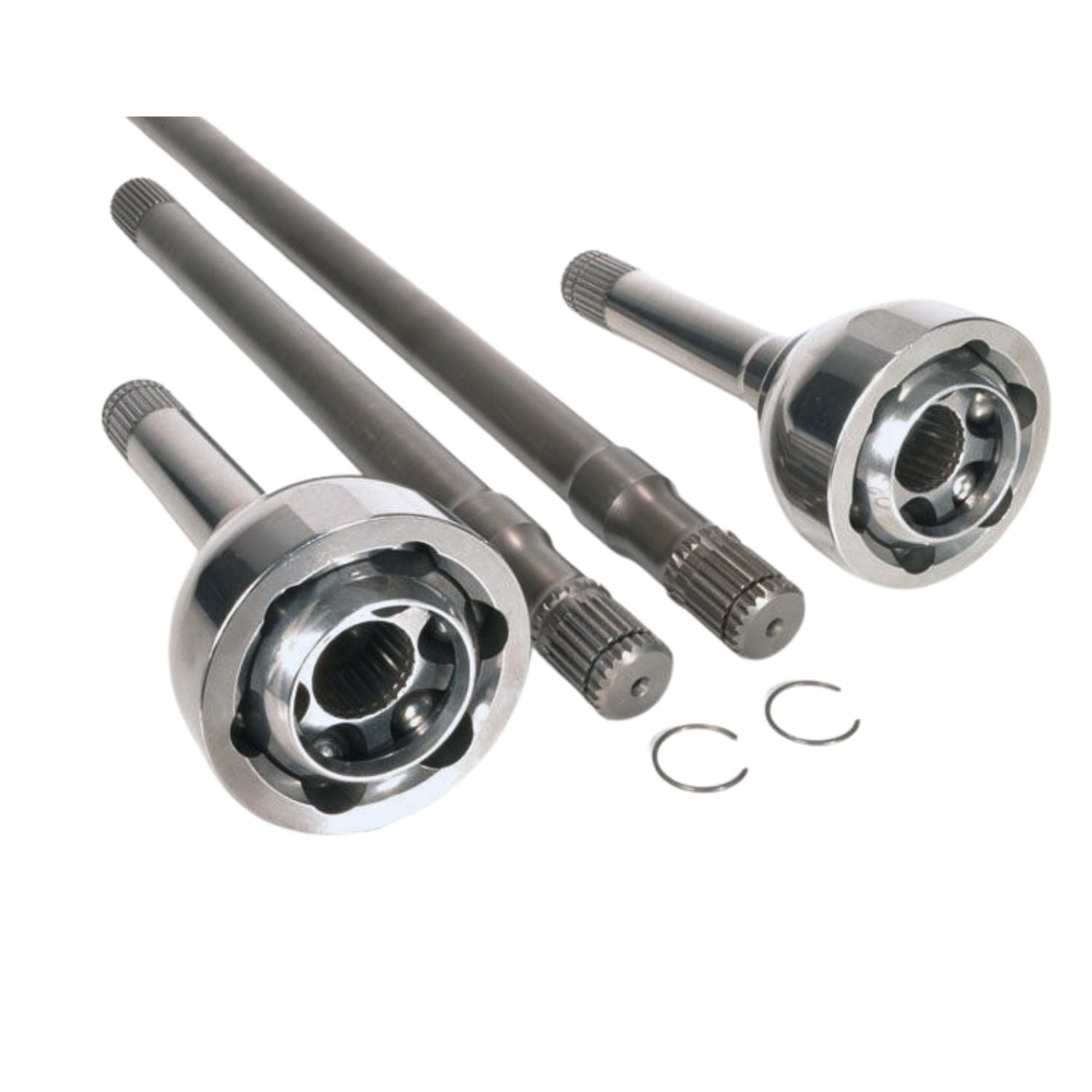RCV eliminates this bottleneck by upgrading the CV joint to a 4340 chromoly 30-spline race, eliminating the neck down section entirely and dramatically increasing torsional strength. Tests prove these axles to be twice as strong as OEM, maintaining the same strength at full steering lock as they do in a straight line.