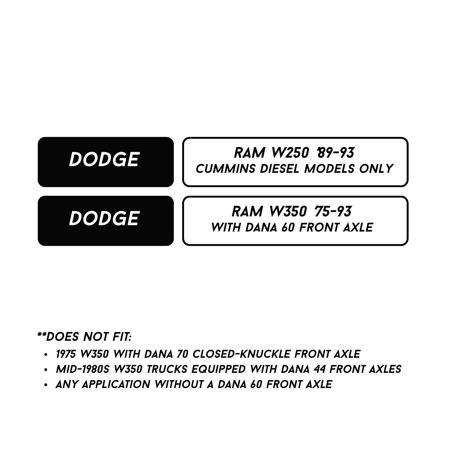 - Dodge Ram W350 (1975–1993) with Dana 60 front axle
