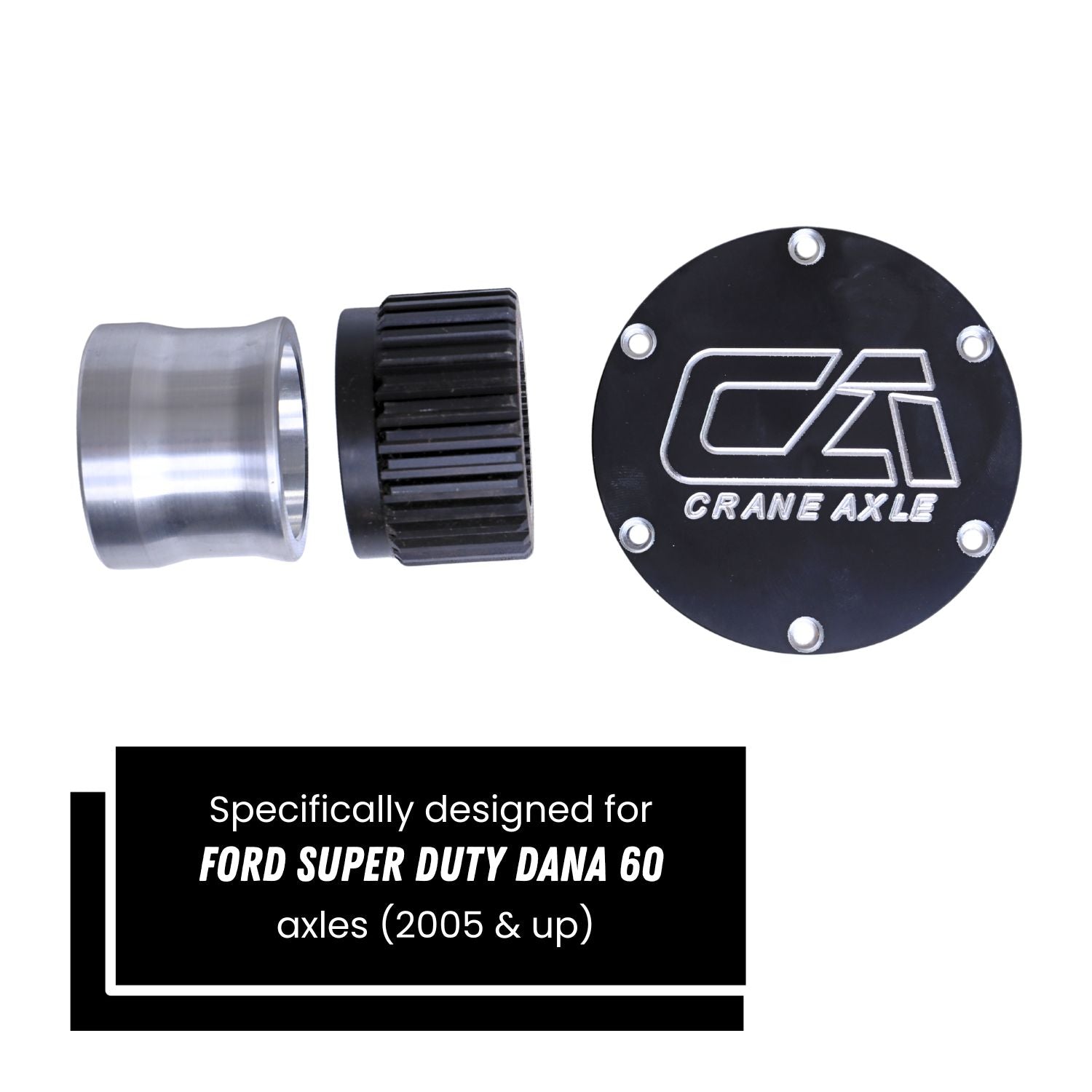 • (2) 6061 Aluminum Caps – Black Anodized, Engraved with Crane Axle Logo