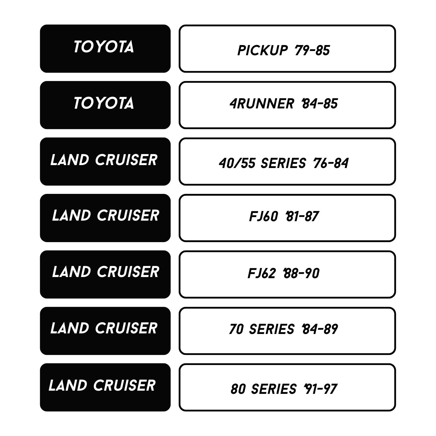 Compatible with Toyota solid front axle models:
