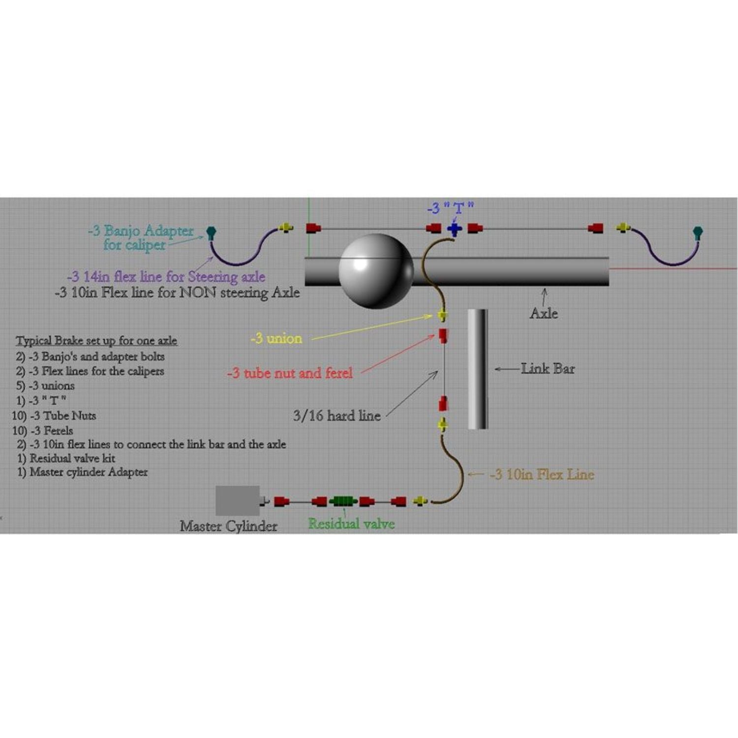 Crane Axle’s Brake Plumbing Kit is built to make pinion brake plumbing simple, clean, and reliable. This kit is specifically designed for 1/8" NPT master cylinders, using the same Fragola Performance components we trust on all of our turn-key buggies.