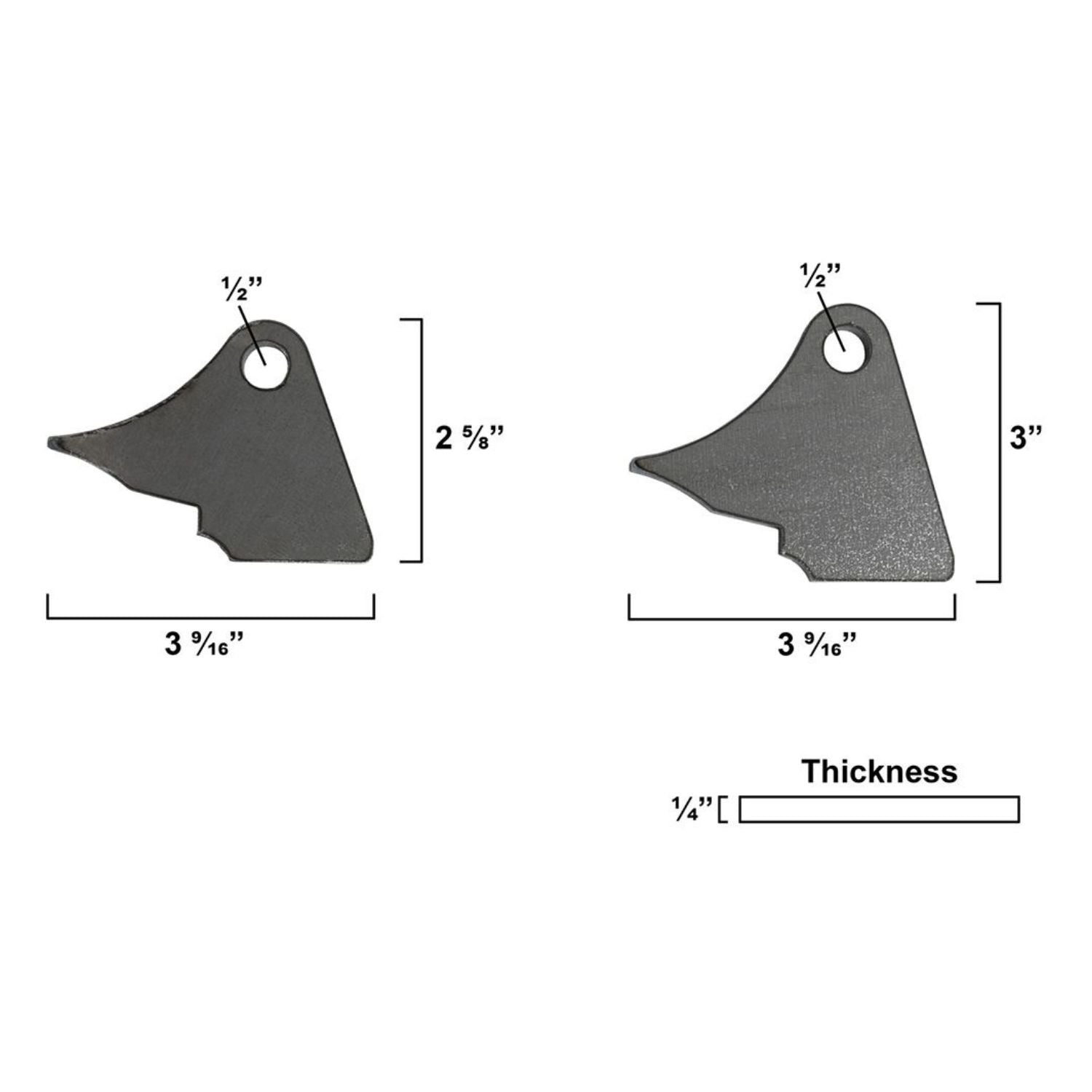 Dana 60 inner C shock mounts solve one of the biggest problems with front suspension packaging—finding a strong, properly angled mounting point that clears steering knuckles throughout full lock and suspension travel. By tying the shock mount directly into both the tube and the C, these gussets create a triangulated support structure, improving durability and reducing flex. The offset tabs allow builders to fine-tune shock angle, improve motion ratio, and maintain steering clearance.