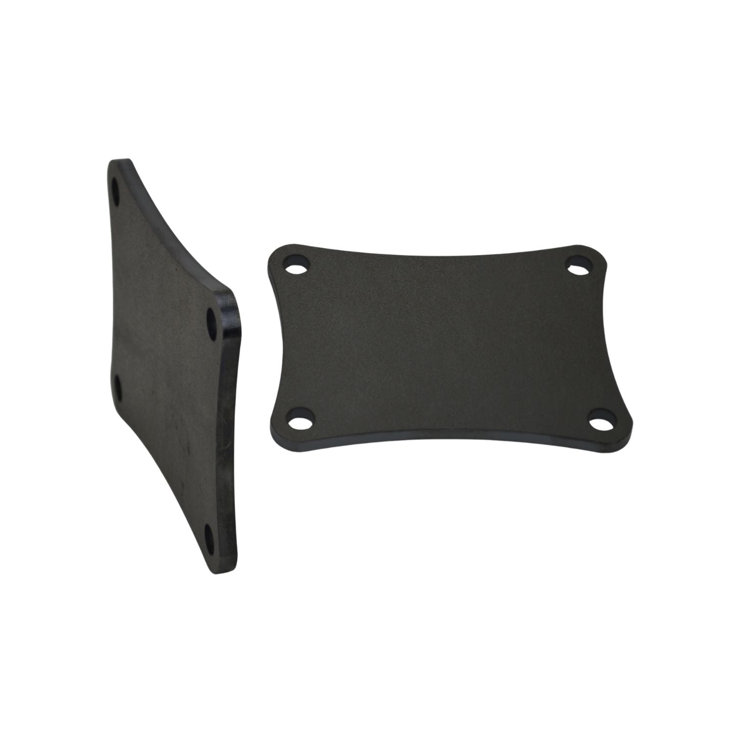 Two black Chevy ls swap engine mount plates on a white background