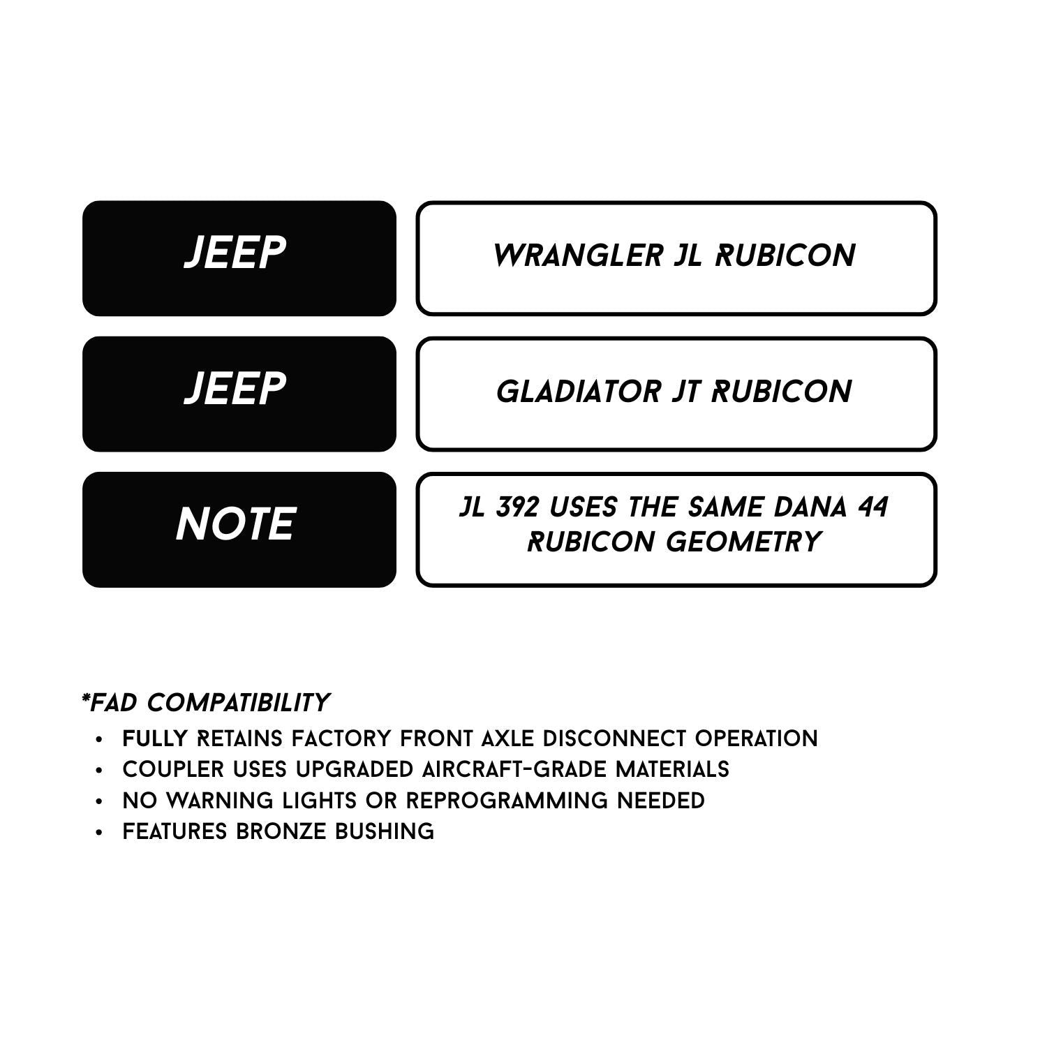 - Note: JL 392 uses the same Dana 44 Rubicon geometry.