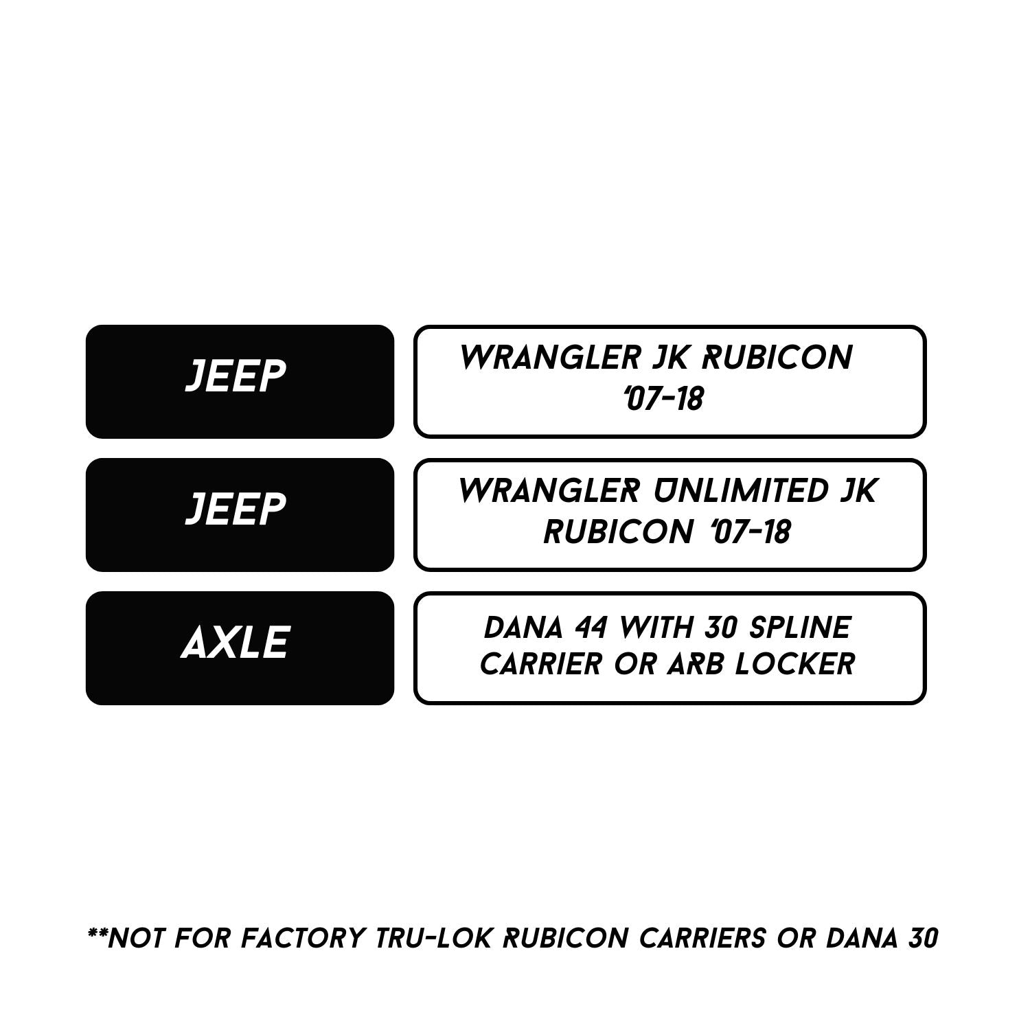 - Fits Jeep JK Rubicon models using a non Tru-Lok differential, including: