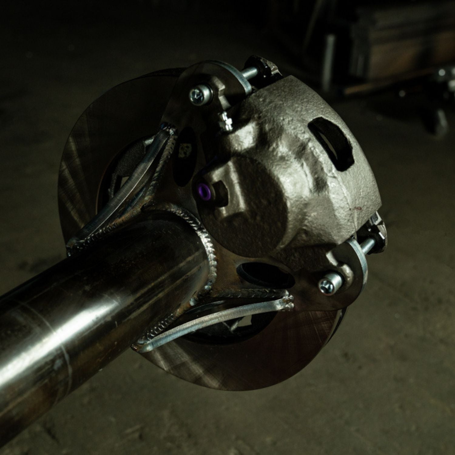 Upgrading from drum to disc brakes on a 14-bolt axle completely changes braking performance—especially under high heat, heavy loads, or off-road abuse. Disc brakes cool much faster, resist fade, and maintain consistent pad-to-rotor contact throughout pad life. Removing the bulky drum assemblies also reduces unsprung weight, improving suspension response and shock performance. The laser-cut 3/8 brackets provide excellent caliper alignment and repeatable installation accuracy.